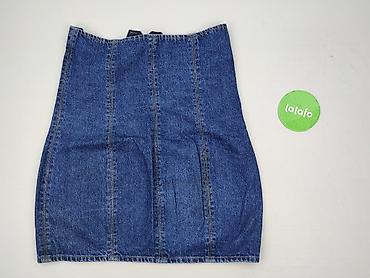 Spódnica jeansowa damska, rozmiar 40. - Krój: prosta, długość mini/tuż nad kolano - Kolor: klasyczny niebieski denim z delikatnymi przetarciami - Zapięcie: z przodu na suwak i dwa metalowe guziki ...