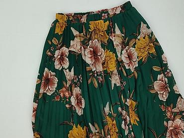 Spódnica damska w kwiaty - Fason: rozszerzana, lekko trapezowa, z klinami dla ładnego układania się materiału - Zapięcie: kryty zamek z tyłu - Wzór/kolor: jasnozielone tło, zielone roślinne orname...