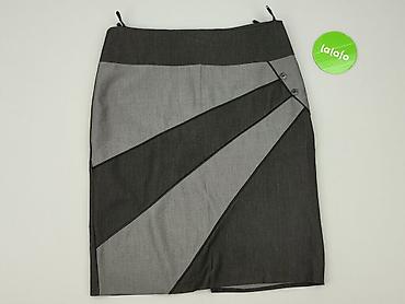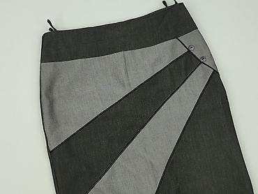 Spódnica damska ołówkowa, dwukolorowa (odcienie szarości), z geometrycznymi wstawkami układającymi się w promienisty wzór na przodzie.