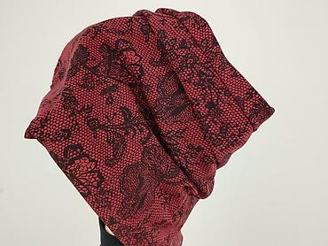 - Wzór: gęsty, czarny nadruk przypominający koronkę/roślinny motyw na bordowym tle.