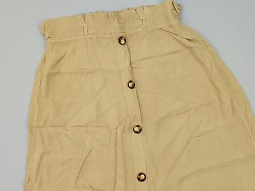 Beżowa spódnica damska CDN Fashion, rozmiar 38 - Krój: lekko rozkloszowany, z wysokim pasem - Zapięcie: rząd dekoracyjnych guzików z przodu - Detale: pionowe zaszewki i marszczenia modelujące sylw...
