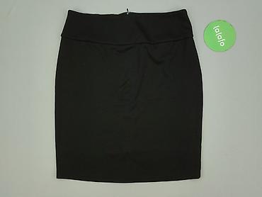Czarna spódnica damska, rozmiar M - Krój: ołówkowy, długość przed kolano - Talia: elastyczna, z dekoracyjną złotą wstawką z przodu - Materiał: 70% wiskoza, 25% poliester, 5% elastan – miękki, elas...
