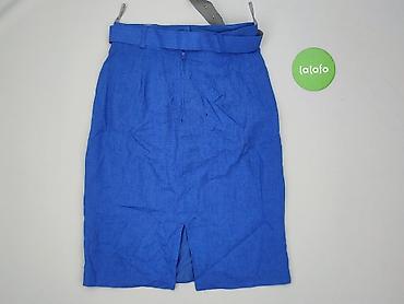 Spódnica ołówkowa damska, kobaltowa - Fason: ołówkowy, do kolan - Talia: średnia, z paskiem w pasie - Zapięcie: kryty zamek z tyłu + guzik - Rozcięcie z tyłu ułatwiające chodzenie - Materiał: gład...