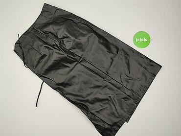 Czarna spódnica damska, rozmiar M - Krój: rozkloszowany, lekko trapezowy, z zaznaczoną talią - Zapięcie: suwak z tyłu w kolorze złotym - Materiał: gładki, o satynowo‑skórzanym wyglądzie (syntetyk) ...