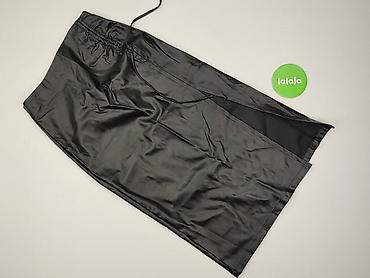 Spódnica damska Sinsay, rozmiar M - Kolor: czarny - Krój: mini, lekko rozkloszowana, z falowanym wykończeniem dołu - Stan: używana - Materiał: 100% poliester z powłoką imitującą skórę (efekt „eko‑...