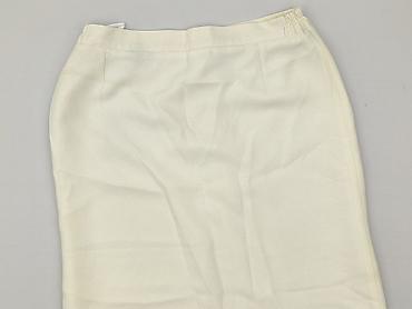 Spódnica damska, rozmiar XL, w kolorze bardzo jasnym ecru/kremowym. Klasyczny, prosty fason do kolan z lekkim zwężeniem ku dołowi. Pas na gumce zapewnia wygodę i dobre dopasowanie. Z przodu delikat...