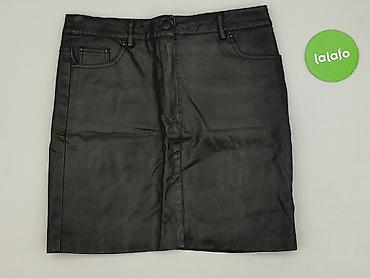 Spódnica damska Sinsay, rozmiar M - Kolor: czarny - Krój: mini, lekko rozkloszowana, z falowanym wykończeniem dołu - Stan: używana - Materiał: 100% poliester z powłoką imitującą skórę (efekt „eko‑...