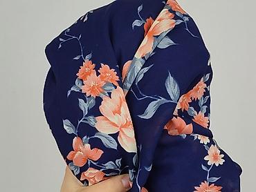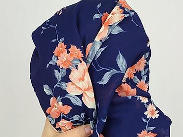 Spódnica damska w kolorze granatowym, wykonana z poliestru, z kwiecistym wzorem. Charakteryzuje się pomarańczowymi i jasnoniebieskimi kwiatami. Spódnica o rozmiarze M.