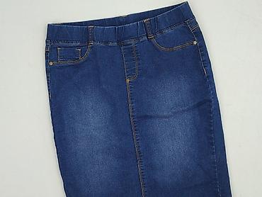 Spódnica jeansowa damska Pepco, rozmiar M - Klasyczny niebieski denim z delikatnymi przetarciami na przodzie i tyle - Fason ołówkowy, długość do kolan - Pas z szlufkami, zapięcie na guzik i zamek ...