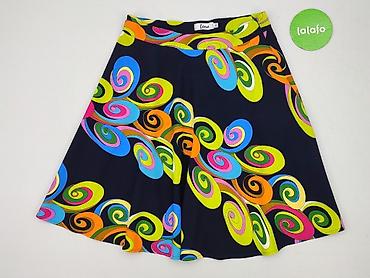 Spódnica damska S/M – Made in Italy - Fason: rozkloszowana, z marszczeniami i falbanami - Wzór: szerokie, cieniowane pasy w odcieniach różu, fioletu, brązu, czerni i żółtego - Talia: elastyczna (g...