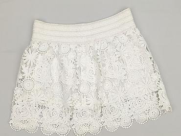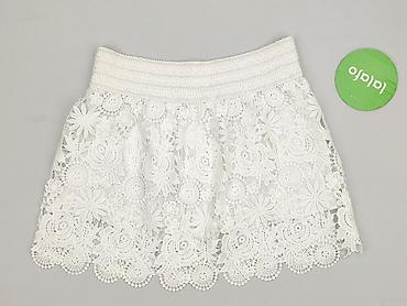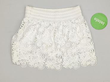 Biała, koronkowa spódniczka damska - Rozmiar z metki: L - Fason: mini - Talia: szeroka, elastyczna (gumka) zapewniająca wygodne dopasowanie - Materiał: ażurowa koronka z ozdobnym, owalnym wzorem; ...