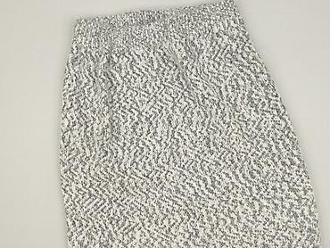Spódnica damska ołówkowa, rozmiar 40. - Fason: dopasowany/ołówkowy, długość za kolano (midi). - Wzór: geometryczne koła/słońca w odcieniach bieli i szarości; tkanina z drobną, wypukłą fakturą. - M...