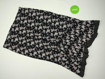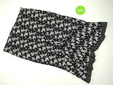 Spódnica damska w kwiaty, warstwowa - Model: spódnica z falbanami/warstwami, lekko asymetryczny dół - Wzór: drobna łąka – odcienie fuksji, beżu, zieleni i bieli na czarnym tle - Talia: elastyczna ...