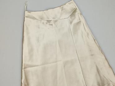 Spódnica damska w prążek, rozmiar 36 - Kolor: beżowo‑piaskowy z delikatnym, drobnym prążkiem - Krój: lekko rozkloszowany ku dołowi, przód z głębokimi kontrafałdami; dekoracyjne, ukośne cięcia mode...Stan: