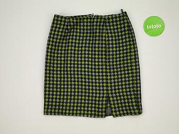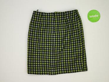 Spódnica damska w kratę – ołówkowa, z tkaniny o wyraźnej fakturze (mięsista, przypominająca tweed). Wzór drobnej kratki w kolorach: limonkowa zieleń, grafit i szarość.