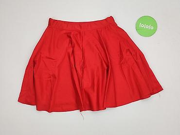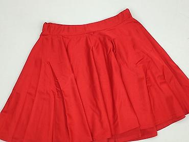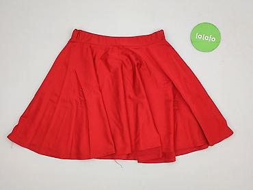 Czerwona spódnica damska, rozmiar S - Krój: lekko rozkloszowana, z zakładkami z przodu i z tyłu - Talia: podwyższona, z dopasowanym paskiem - Zapięcie: suwak z tyłu - Długość: mini/przed kolano - ...