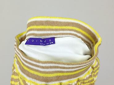 - Talia: elastyczna, prążkowana guma w pasie w beżowo-białe i żółte paski