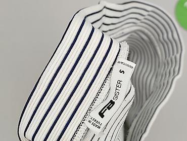 - Wzór: drobne, poziome paski biało‑granatowe