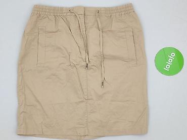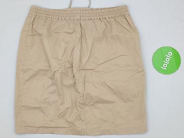 Beżowa spódnica damska z bawełny - Rozmiar: L (metka “SIZE L”) - Skład: 100% bawełna - Krój: rozkloszowany, długość mini/tuż nad kolano - Talia: szeroka, marszczona guma z falbanką typu paperbag +...