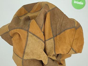 - Wzór: duża kratka/argyle w odcieniach karmelowego, miodowego i brązu; ozdobne „stebnowane” łączenia rombów