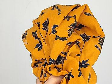 - Kolor i wzór: musztardowa/ciemnożółta baza z czarnym, roślinnym nadrukiem (gałązki i kwiaty)