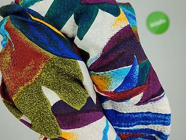 - Wzór: intensywny, wielobarwny print roślinny/liściasty w odcieniach czerwieni, granatu, zieleni, turkusu, żółci i bieli