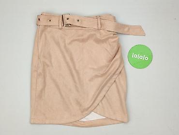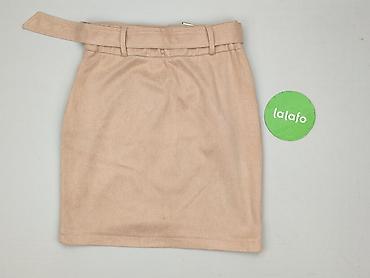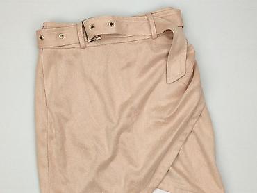 Spódnica damska w prążek, rozmiar 36 - Kolor: beżowo‑piaskowy z delikatnym, drobnym prążkiem - Krój: lekko rozkloszowany ku dołowi, przód z głębokimi kontrafałdami; dekoracyjne, ukośne cięcia mode...