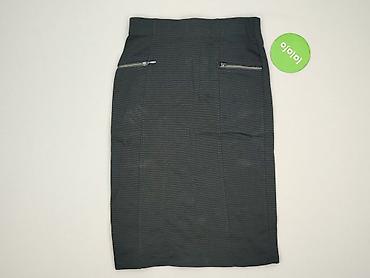 Spódnica damska ołówkowa, rozmiar S - Krój: ołówkowy, dopasowany, długość do kolan - Wysoki stan - Wzór: czarna kratka na jasnoszarym tle (regularna siatka kwadratów) - Materiał: miękki, średniej g...