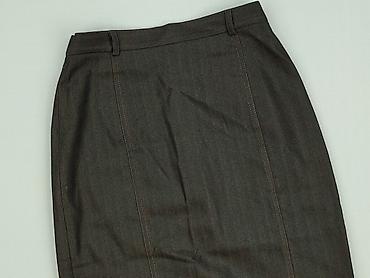 Spódnica ołówkowa damska, rozmiar 46 - Krój: klasyczny ołówek, długość do kolan - Kolor: ciemny brąz z drobną melanżową fakturą - Materiał: tkanina garniturowa, lekko elastyczna w dotyku; wewnątrz...