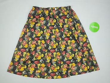 Spódnica damska w kwiaty - Fason: lekko rozkloszowana, długość do kolan - Wzór: gęsty, akwarelowy nadruk kwiatowy na jasnym tle (róże, fiolety, zielenie, akcenty niebieskie) - Zapięcie: zamek z ty...