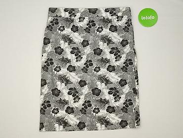 Spódnica damska, rozmiar M. - Fason: prosta, ołówkowa, długość mini/przed kolano. - Wzór: wyrazisty, kwiatowy print w odcieniach fuksji, czerni i szarości na białym tle. - Materiał: 95% bawełna,...