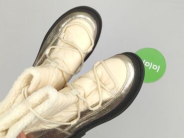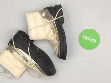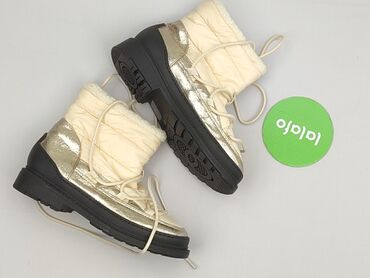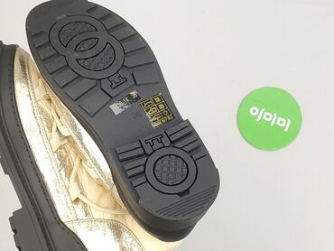 - Kolor: kremowy/waniliowy z metalicznymi, złotymi panelami; podeszwa czarna