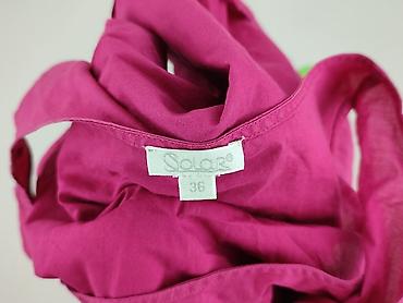 Bluzka damska Solar, rozmiar S - Fason: lekko dopasowany, dzianinowy top z krótkim rękawem - Dekolt: głęboki V z przodu; na plecach duże wycięcie z wiązaniem na troczki - Dół: szeroki, prążkowany ...Rozmiar:
