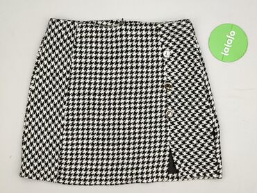 Spódnica mini Sinsay, rozmiar M. - Krój: prosta mini, z lekkim rozcięciem z przodu - Wzór: krata typu glen check w odcieniach czerni, bieli i brązu - Zapięcie/dekor: podwójny rząd czterech guzików...