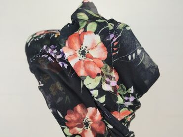 - Wzór: czarny materiał w pełny, kolorowy motyw kwiatowy.