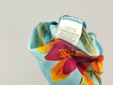 - Kolorystyka: turkusowe tło z tropikalnym, wielobarwnym nadrukiem (liście i kwiaty w odcieniach żółci, zieleni, pomarańczu i czerwieni)