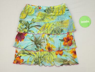 Spódnica damska w tropikalny wzór - Krój: rozkloszowana, z licznymi zakładkami/kontrafałdami, długość midi (za kolano) - Talia: elastyczna (gumka) + zapięcie na suwak z boku - Materiał: 52% bawełn...