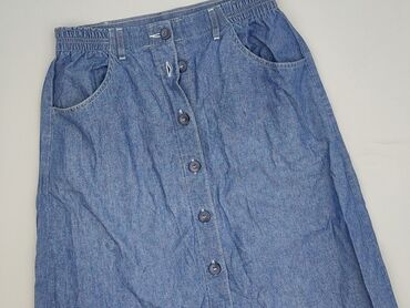 Jeansowa spódnica midi z niebieskiego denimu - Krój: ołówkowy, długość przed kolano/midi - Pas: elastyczna guma + zapięcie na guzik i zamek z przodu - Kieszenie: dwie duże naszywane kieszenie z pr...Stan:
