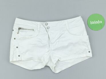 Białe damskie szorty z mankietem - Krój: klasyczne 5 kieszeni (2 z przodu + kieszonka zegarkowa na nity, 2 z tyłu), szlufki na pasek, zapięcie na guzik i zamek. - Rozmiar z metki: L. - Materiał: 9...