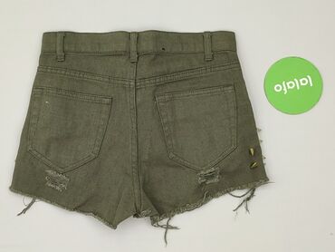 Szorty jeansowe BIK BOK - Kolor: oliwkowa zieleń - Rozmiar: S (na metce) - Materiał: 100% bawełna - Fason: krótkie szorty z wysokim stanem, pięć kieszeni, szlufki na pasek - Zapięcie: guzik i suwa...