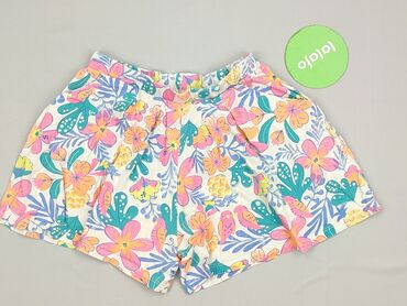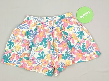 Szorty dziewczęce w tropikalny wzór - Kolor: niebieski z nadrukiem liści i kwiatów w odcieniach zieleni, różu i czerwieni - Krój: krótkie szorty z lekko zaokrąglonymi bokami i lamówką - Pas: szero...