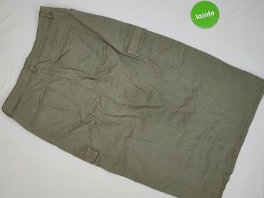 Spódnica damska typu cargo, oliwkowo-zielona, rozmiar XL. - Fason: midi, prosty, z rozcięciem z tyłu dla wygody ruchu - Pas: elastyczny z tunelikiem/guzikami do regulacji - Kieszenie: dwie skośne ...
