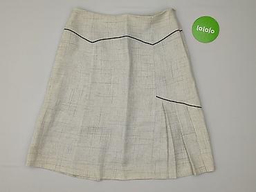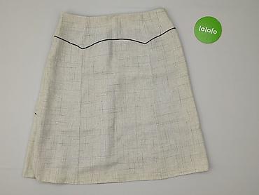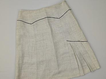 Spódnica damska w prążek, rozmiar 36 - Kolor: beżowo‑piaskowy z delikatnym, drobnym prążkiem - Krój: lekko rozkloszowany ku dołowi, przód z głębokimi kontrafałdami; dekoracyjne, ukośne cięcia mode...