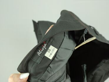 Czarna spódnica Alice Bizous, rozmiar 38. - Krój: ołówkowy, długość do kolan. - Kolor: czarny. - Detale: asymetryczny, długi metalowy suwak YKK z przodu; dwie ozdobne poziome kieszonki/suwaki po p...