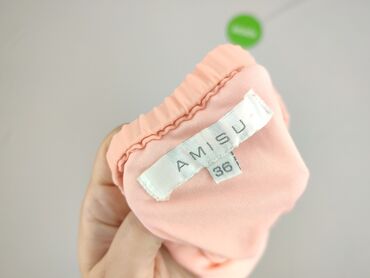 Różowa spódnica AMISU, rozmiar 38. - Krój: mini, lekko rozszerzana ku dołowi, delikatna falbana przy dolnej krawędzi - Kolor: jasny pastelowy róż - Materiał: cienka, przewiewna tkanina (wykończeni...