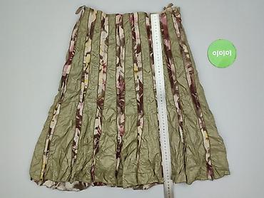 Spódnica damska, oliwkowa, z marszczonej tkaniny - Fason: lekko rozkloszowana, z klinami – pięknie pracuje przy ruchu - Długość: za kolano/średnia (midi) - Tkanina: cienka, lekko połyskująca z wyr...