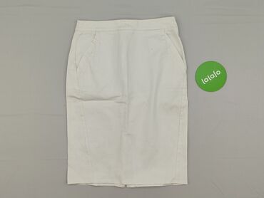 Biała spódnica ołówkowa dla kobiet - Klasyczny, prosty krój ołówkowy – długość za kolano. - Gładka, jednolita tkanina w kolorze czystej bieli; lekko elastyczna, przyjemna w dotyku. - Wszyta podsze...
