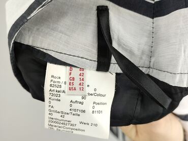 Spódnica DanHen, rozmiar 38 - Fason: rozkloszowana, z lekkim marszczeniem i doszytą, kontrastową falbaną u dołu - Wzór: czarno‑biała krata (różnej grubości paski) - Materiał: 100% poliester (metka...