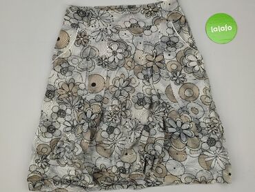 Spódnica De Facto, rozmiar 36 - Materiał: 100% bawełna (metka wewnętrzna) - Wzór: marynistyczne pasy w kolorach czerwonym i granatowym na białym tle - Dół ozdobiony dużym, kwiatowym printem w czer...