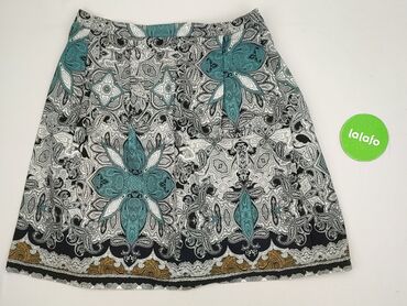 Spódnica damska GREY WOLF, rozmiar M - Krój: ołówkowy, długość do kolan - Kolor bazowy: turkus/niebieski - Wzór: ozdobny, ornamentalny bordiurą u dołu w odcieniach pomarańczu, beżu, czerni i różu ...